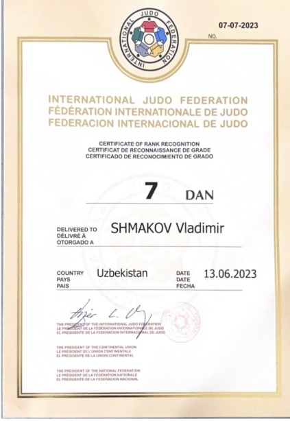 Совсем недавно Международная Федерация Дзюдо (IJF) присвоила 7 Дан Вице-президенту Федерации дзюдо и самбо города Подольска, Чемпиону Азии 1996 по дзюдо, участнику Олимпийских Игр 1996 по дзюдо в составе сборной команды Узбекистана, судье IJF - Шмакову Владимиру Викторовичу!